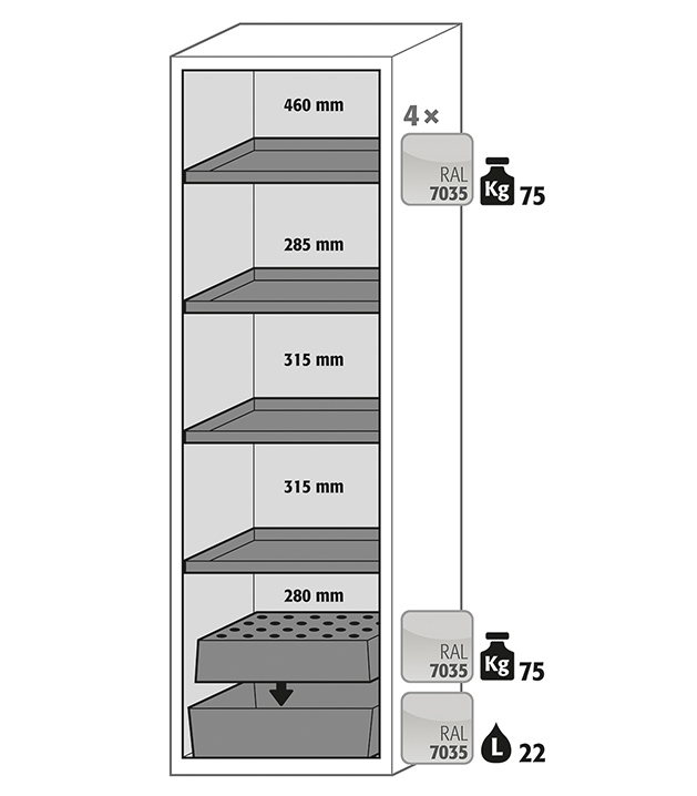 | Mål B x D x H indvendigt | 450 x 524 x 1742 mm |