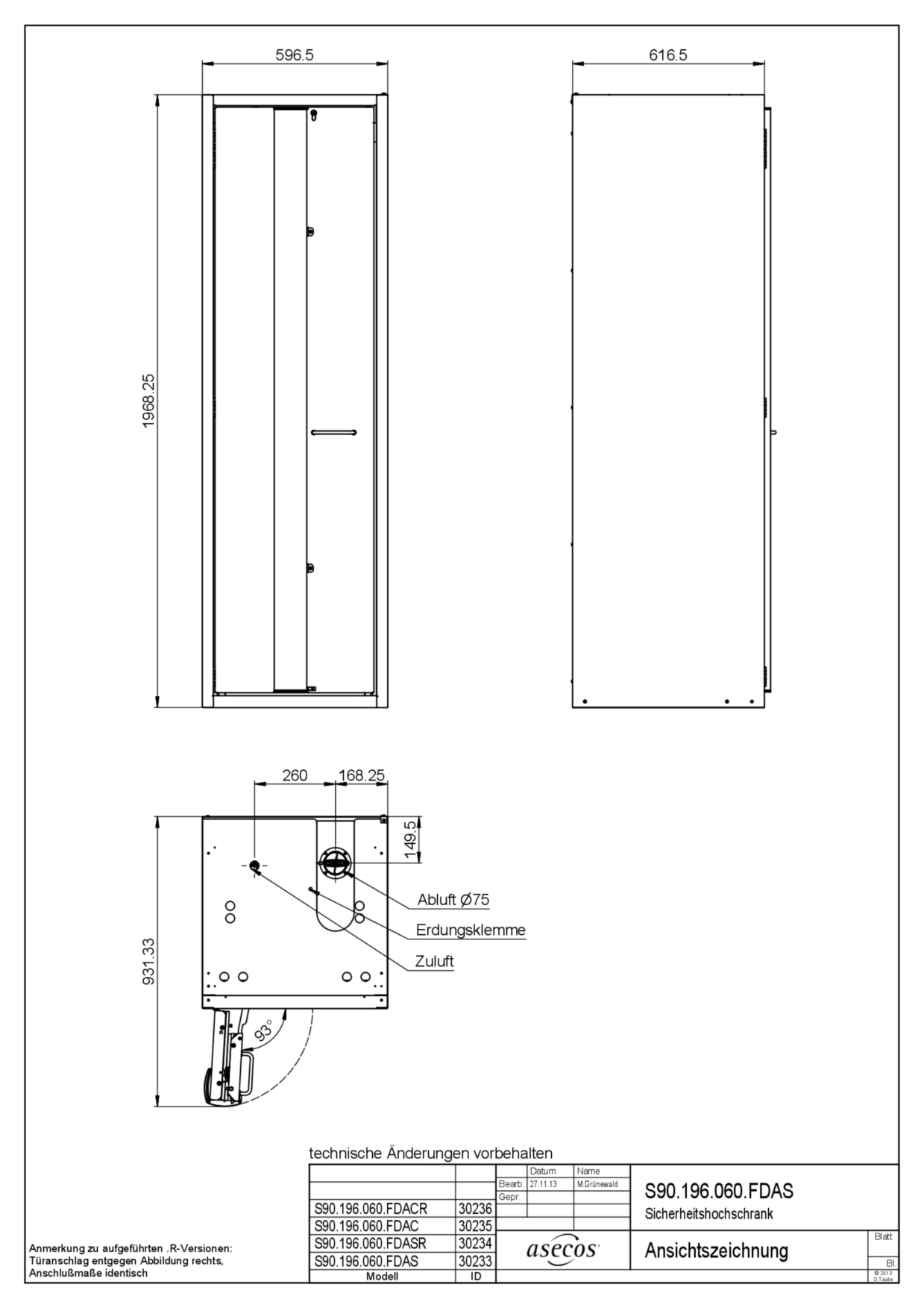 Brandsikre skabe S-PHOENIX-90 Model S90.196.060.FDASR