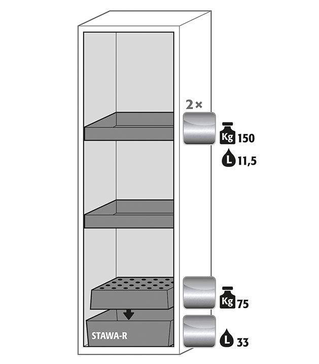 - Robust konstruktion og levetid: stabilt yderhus af pulverlakeret finstålplade, 3-dobbelt dørhængsel, komplet låsemekanisme og sikkerhedselementer monteret uden for opbevaringsrummet for at beskytte mod korrosion