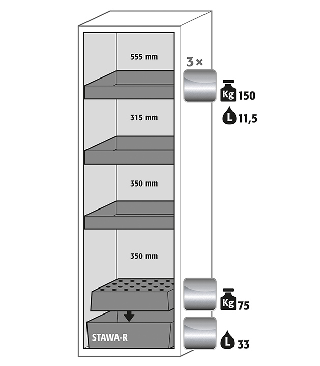 | Mål B x D x H indvendigt | 450 x 524 x 1742 mm |