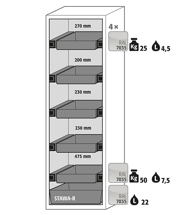 - 4 x skuffe Anslag låge til højre (stålplade pulver lakeret)