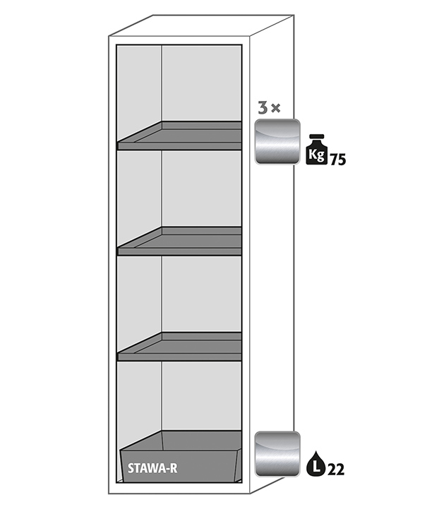 - Robust konstruktion og levetid: stabilt yderhus af pulverlakeret finstålplade, 3-dobbelt dørhængsel, komplet låsemekanisme og sikkerhedselementer monteret uden for opbevaringsrummet for at beskytte mod korrosion