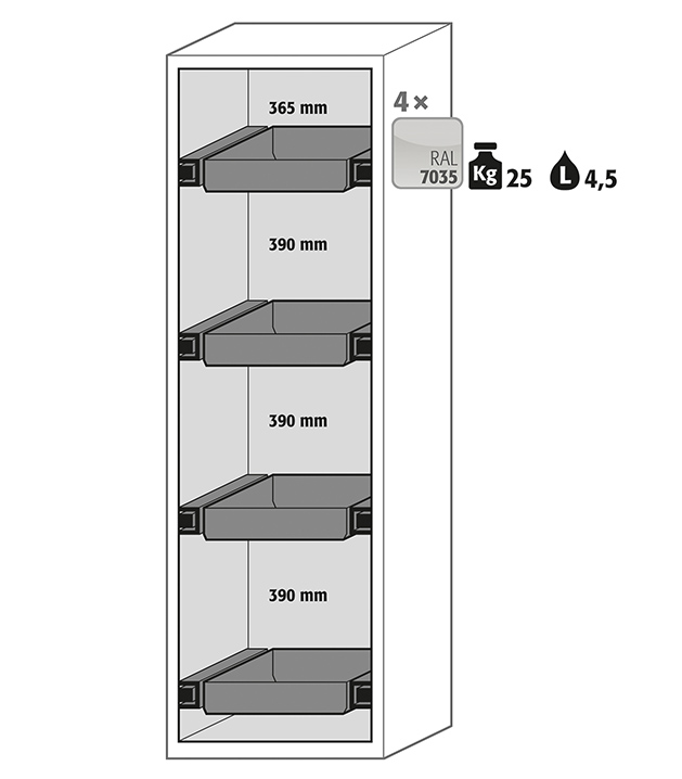 - 4 x skuffe Anslag låge til højre (stålplade pulver lakeret)