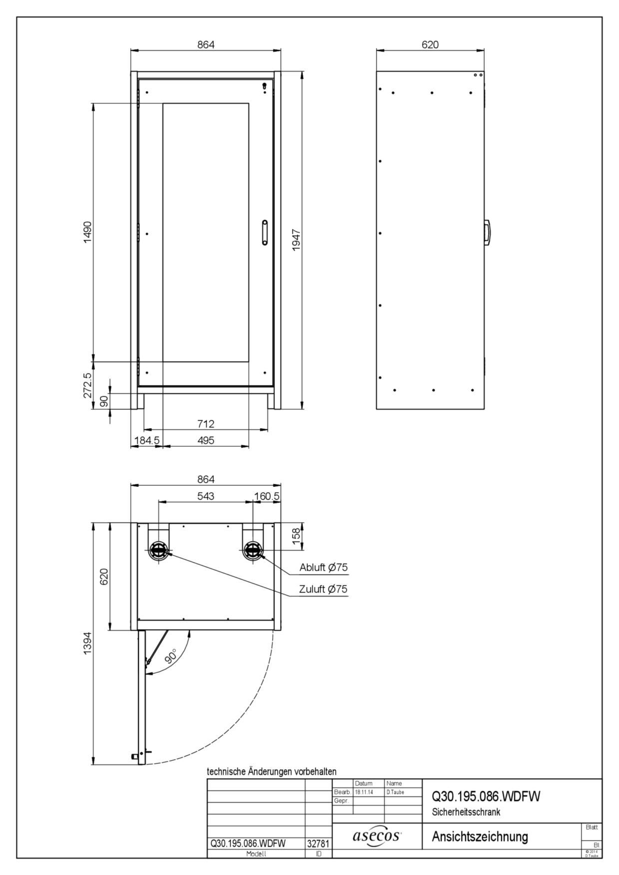 Sicherheitsschrank Q-DISPLAY-30 Modell Q30.195.086.WDFW