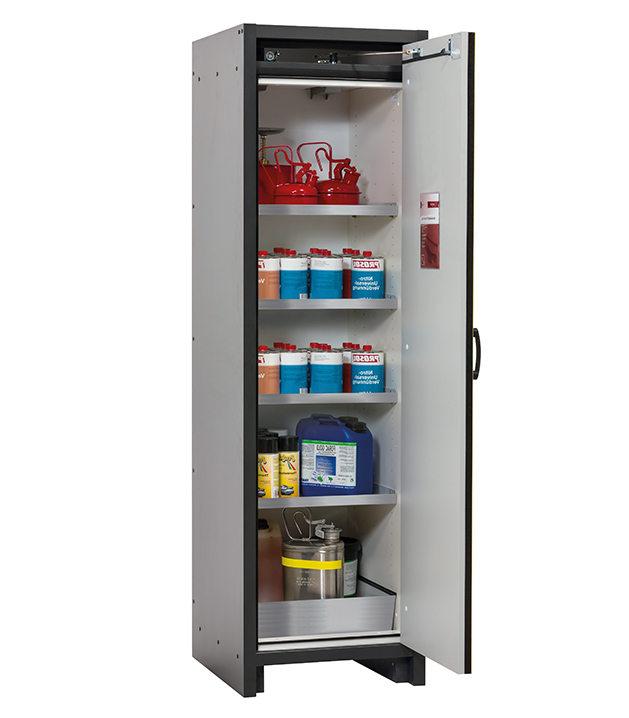 Bitte beachten Sie die jeweils gültigen, nationalen Regeln und Vorschriften zur Lagerung von Gefahrstoffen bei der Konfiguration Ihres Produktes. Sollten Sie unsicher sein, helfen Ihnen die asecos Experten gerne weiter.