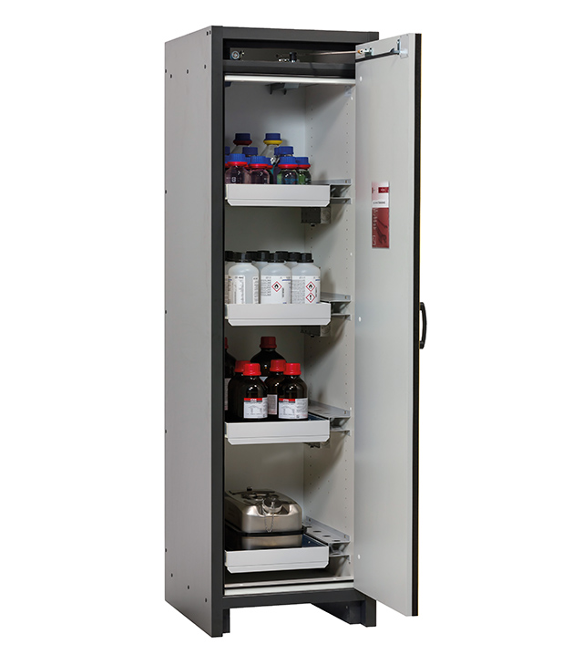 Bitte beachten Sie die jeweils gültigen, nationalen Regeln und Vorschriften zur Lagerung von Gefahrstoffen bei der Konfiguration Ihres Produktes. Sollten Sie unsicher sein, helfen Ihnen die asecos Experten gerne weiter.