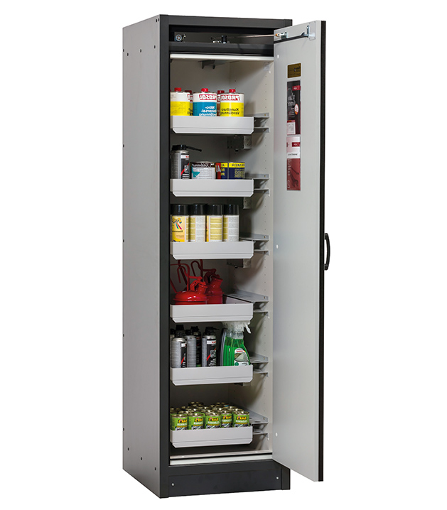 Bitte beachten Sie die jeweils gültigen, nationalen Regeln und Vorschriften zur Lagerung von Gefahrstoffen bei der Konfiguration Ihres Produktes. Sollten Sie unsicher sein, helfen Ihnen die asecos Experten gerne weiter.