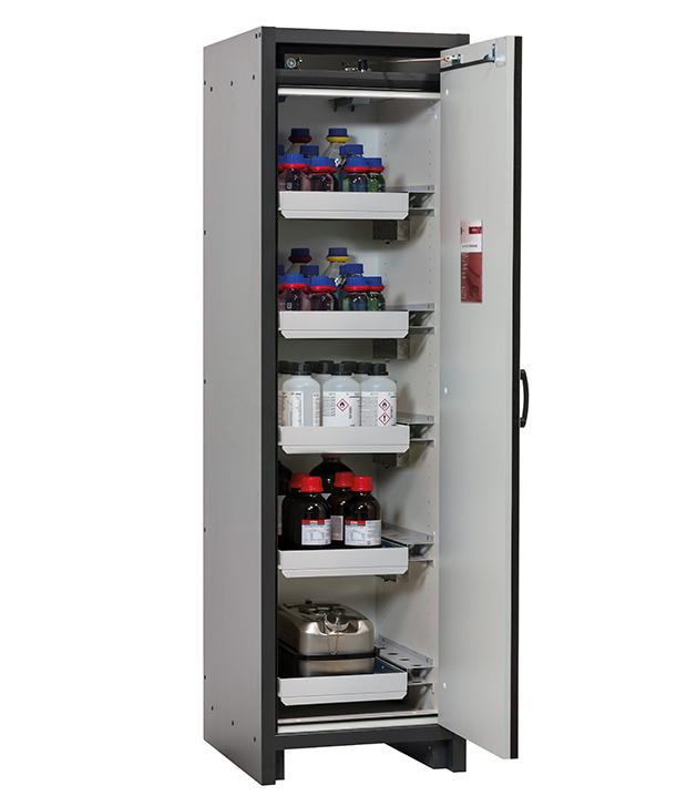 Bitte beachten Sie die jeweils gültigen, nationalen Regeln und Vorschriften zur Lagerung von Gefahrstoffen bei der Konfiguration Ihres Produktes. Sollten Sie unsicher sein, helfen Ihnen die asecos Experten gerne weiter.