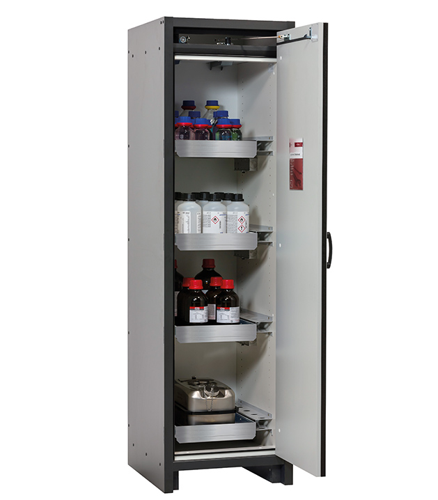 Bitte beachten Sie die jeweils gültigen, nationalen Regeln und Vorschriften zur Lagerung von Gefahrstoffen bei der Konfiguration Ihres Produktes. Sollten Sie unsicher sein, helfen Ihnen die asecos Experten gerne weiter.