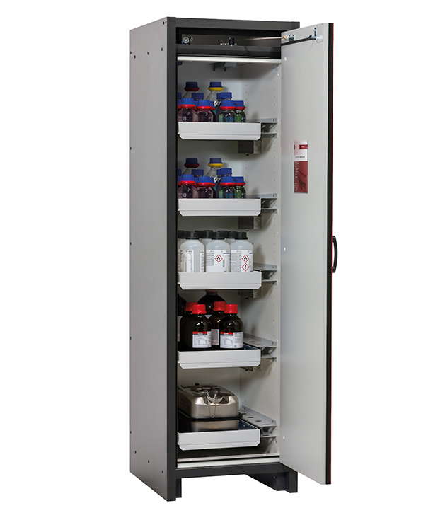 Bitte beachten Sie die jeweils gültigen, nationalen Regeln und Vorschriften zur Lagerung von Gefahrstoffen bei der Konfiguration Ihres Produktes. Sollten Sie unsicher sein, helfen Ihnen die asecos Experten gerne weiter.
