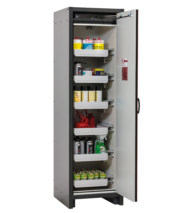Bitte beachten Sie die jeweils gültigen, nationalen Regeln und Vorschriften zur Lagerung von Gefahrstoffen bei der Konfiguration Ihres Produktes. Sollten Sie unsicher sein, helfen Ihnen die asecos Experten gerne weiter.