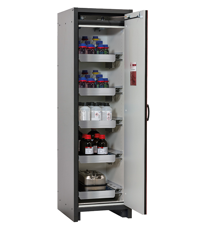 Bitte beachten Sie die jeweils gültigen, nationalen Regeln und Vorschriften zur Lagerung von Gefahrstoffen bei der Konfiguration Ihres Produktes. Sollten Sie unsicher sein, helfen Ihnen die asecos Experten gerne weiter.