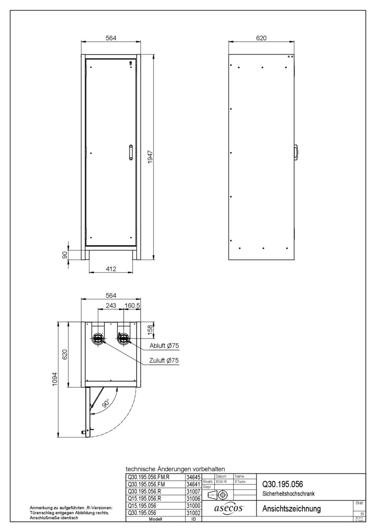 Sicherheitsschrank Q-CLASSIC-30 Modell Q30.195.056.R