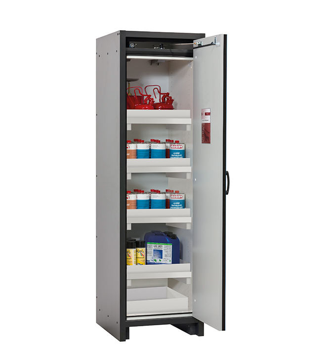 Bitte beachten Sie die jeweils gültigen, nationalen Regeln und Vorschriften zur Lagerung von Gefahrstoffen bei der Konfiguration Ihres Produktes. Sollten Sie unsicher sein, helfen Ihnen die asecos Experten gerne weiter.