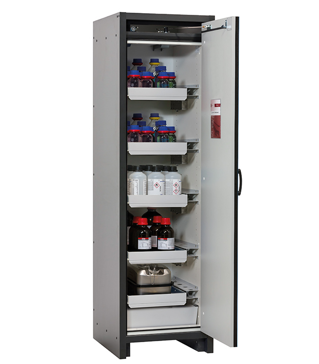 Bitte beachten Sie die jeweils gültigen, nationalen Regeln und Vorschriften zur Lagerung von Gefahrstoffen bei der Konfiguration Ihres Produktes. Sollten Sie unsicher sein, helfen Ihnen die asecos Experten gerne weiter.
