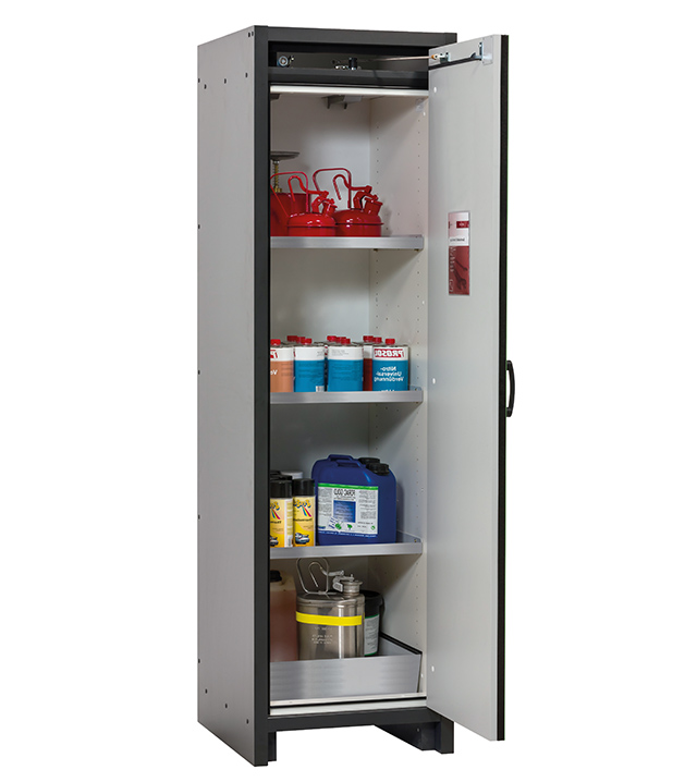 Bitte beachten Sie die jeweils gültigen, nationalen Regeln und Vorschriften zur Lagerung von Gefahrstoffen bei der Konfiguration Ihres Produktes. Sollten Sie unsicher sein, helfen Ihnen die asecos Experten gerne weiter.