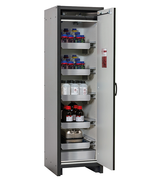 Bitte beachten Sie die jeweils gültigen, nationalen Regeln und Vorschriften zur Lagerung von Gefahrstoffen bei der Konfiguration Ihres Produktes. Sollten Sie unsicher sein, helfen Ihnen die asecos Experten gerne weiter.