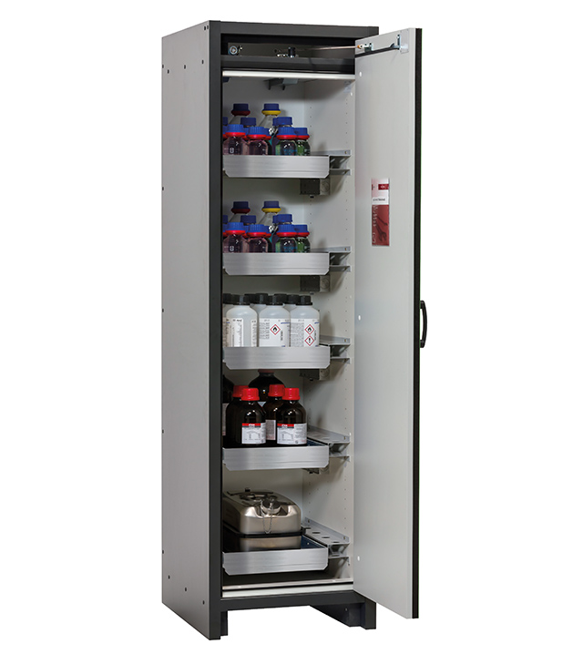Bitte beachten Sie die jeweils gültigen, nationalen Regeln und Vorschriften zur Lagerung von Gefahrstoffen bei der Konfiguration Ihres Produktes. Sollten Sie unsicher sein, helfen Ihnen die asecos Experten gerne weiter.