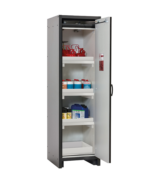 Bitte beachten Sie die jeweils gültigen, nationalen Regeln und Vorschriften zur Lagerung von Gefahrstoffen bei der Konfiguration Ihres Produktes. Sollten Sie unsicher sein, helfen Ihnen die asecos Experten gerne weiter.