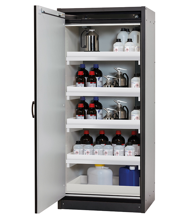 Bitte beachten Sie die jeweils gültigen, nationalen Regeln und Vorschriften zur Lagerung von Gefahrstoffen bei der Konfiguration Ihres Produktes. Sollten Sie unsicher sein, helfen Ihnen die asecos Experten gerne weiter.