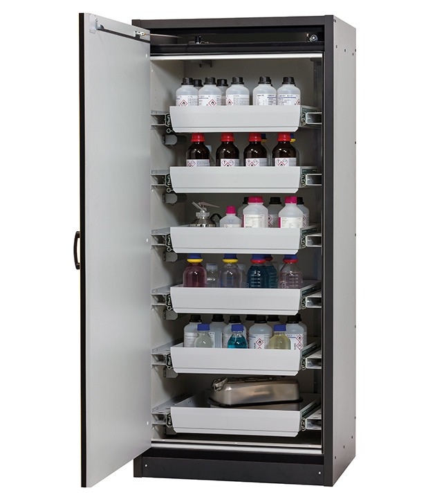 Bitte beachten Sie die jeweils gültigen, nationalen Regeln und Vorschriften zur Lagerung von Gefahrstoffen bei der Konfiguration Ihres Produktes. Sollten Sie unsicher sein, helfen Ihnen die asecos Experten gerne weiter.