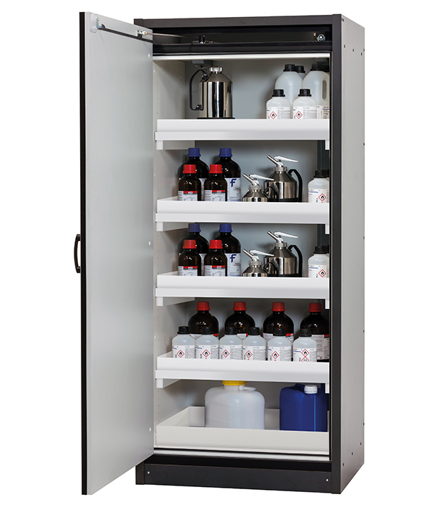 Bitte beachten Sie die jeweils gültigen, nationalen Regeln und Vorschriften zur Lagerung von Gefahrstoffen bei der Konfiguration Ihres Produktes. Sollten Sie unsicher sein, helfen Ihnen die asecos Experten gerne weiter.