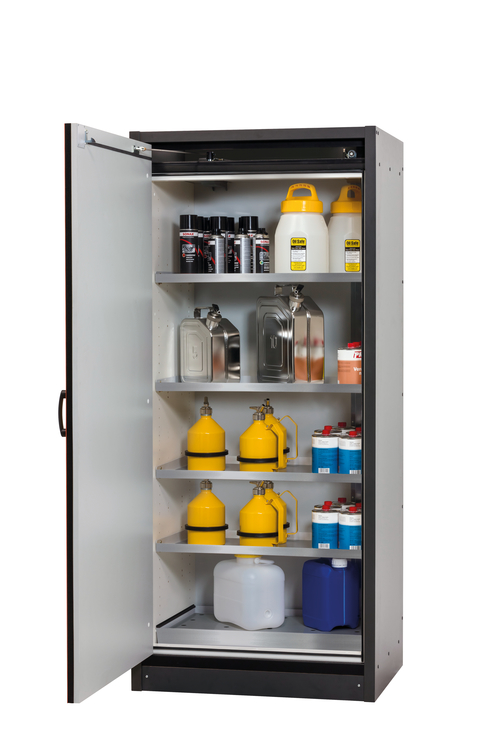 Bitte beachten Sie die jeweils gültigen, nationalen Regeln und Vorschriften zur Lagerung von Gefahrstoffen bei der Konfiguration Ihres Produktes. Sollten Sie unsicher sein, helfen Ihnen die asecos Experten gerne weiter.