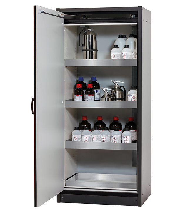 Bitte beachten Sie die jeweils gültigen, nationalen Regeln und Vorschriften zur Lagerung von Gefahrstoffen bei der Konfiguration Ihres Produktes. Sollten Sie unsicher sein, helfen Ihnen die asecos Experten gerne weiter.