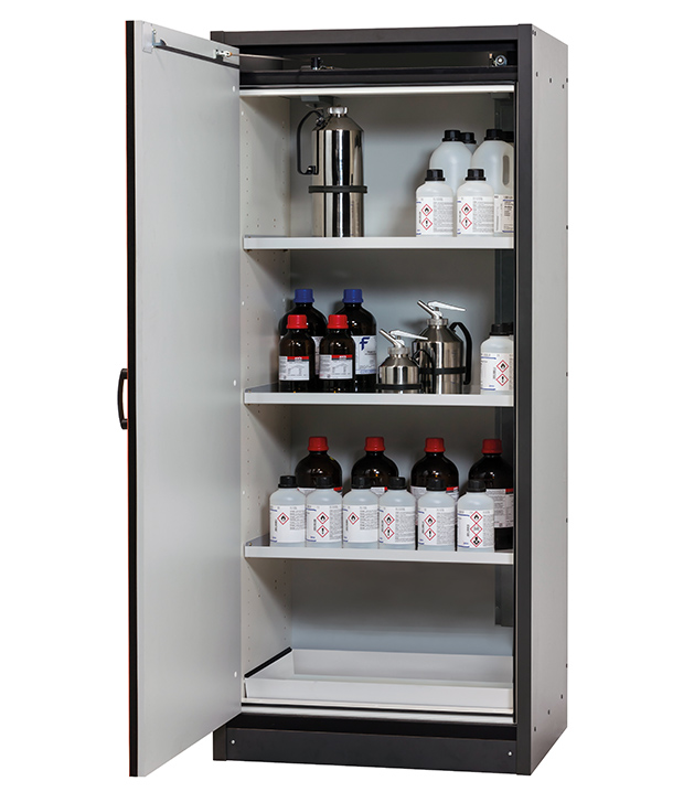 Bitte beachten Sie die jeweils gültigen, nationalen Regeln und Vorschriften zur Lagerung von Gefahrstoffen bei der Konfiguration Ihres Produktes. Sollten Sie unsicher sein, helfen Ihnen die asecos Experten gerne weiter.