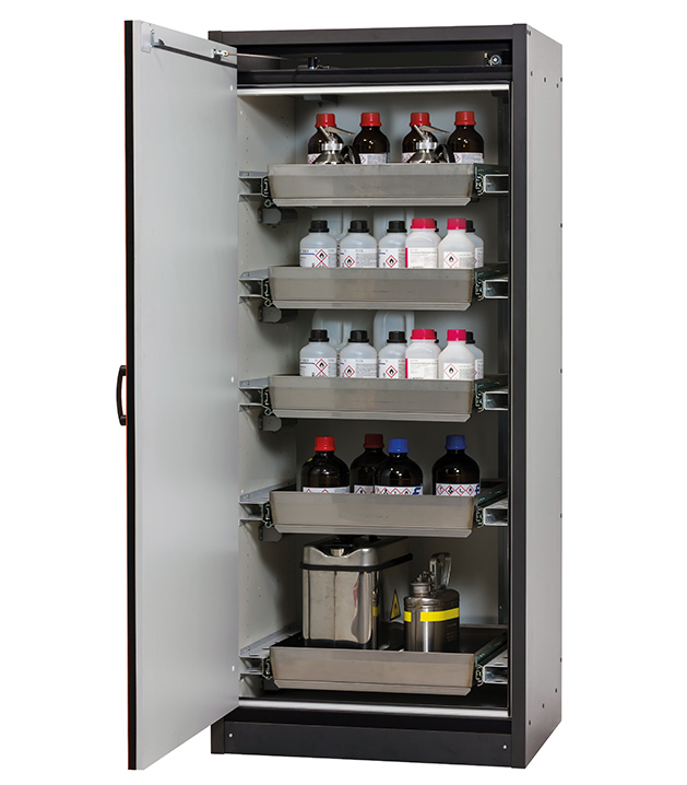 Bitte beachten Sie die jeweils gültigen, nationalen Regeln und Vorschriften zur Lagerung von Gefahrstoffen bei der Konfiguration Ihres Produktes. Sollten Sie unsicher sein, helfen Ihnen die asecos Experten gerne weiter.
