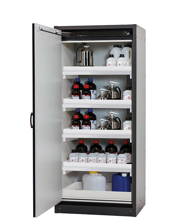 Bitte beachten Sie die jeweils gültigen, nationalen Regeln und Vorschriften zur Lagerung von Gefahrstoffen bei der Konfiguration Ihres Produktes. Sollten Sie unsicher sein, helfen Ihnen die asecos Experten gerne weiter.