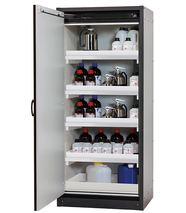 Bitte beachten Sie die jeweils gültigen, nationalen Regeln und Vorschriften zur Lagerung von Gefahrstoffen bei der Konfiguration Ihres Produktes. Sollten Sie unsicher sein, helfen Ihnen die asecos Experten gerne weiter.