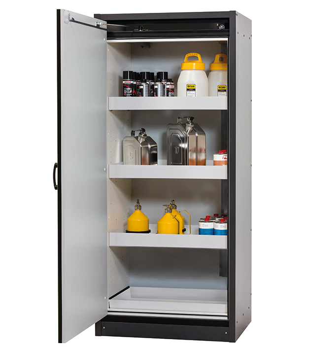 Bitte beachten Sie die jeweils gültigen, nationalen Regeln und Vorschriften zur Lagerung von Gefahrstoffen bei der Konfiguration Ihres Produktes. Sollten Sie unsicher sein, helfen Ihnen die asecos Experten gerne weiter.