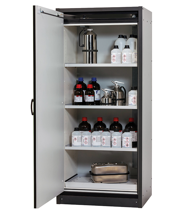 Bitte beachten Sie die jeweils gültigen, nationalen Regeln und Vorschriften zur Lagerung von Gefahrstoffen bei der Konfiguration Ihres Produktes. Sollten Sie unsicher sein, helfen Ihnen die asecos Experten gerne weiter.