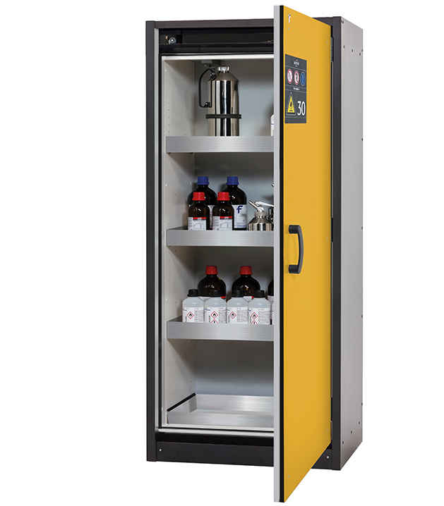 Bitte beachten Sie die jeweils gültigen, nationalen Regeln und Vorschriften zur Lagerung von Gefahrstoffen bei der Konfiguration Ihres Produktes. Sollten Sie unsicher sein, helfen Ihnen die asecos Experten gerne weiter.