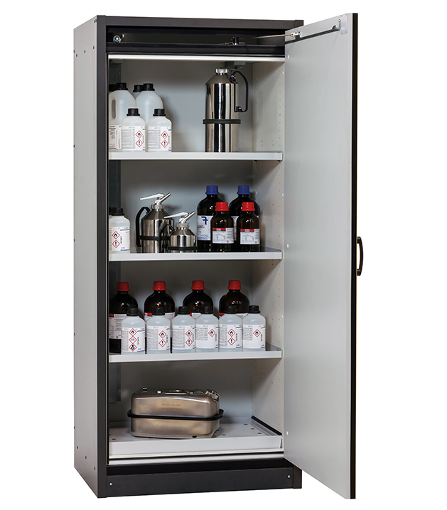 Bitte beachten Sie die jeweils gültigen, nationalen Regeln und Vorschriften zur Lagerung von Gefahrstoffen bei der Konfiguration Ihres Produktes. Sollten Sie unsicher sein, helfen Ihnen die asecos Experten gerne weiter.