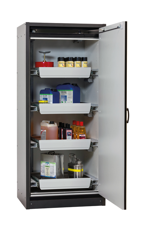 Bitte beachten Sie die jeweils gültigen, nationalen Regeln und Vorschriften zur Lagerung von Gefahrstoffen bei der Konfiguration Ihres Produktes. Sollten Sie unsicher sein, helfen Ihnen die asecos Experten gerne weiter.