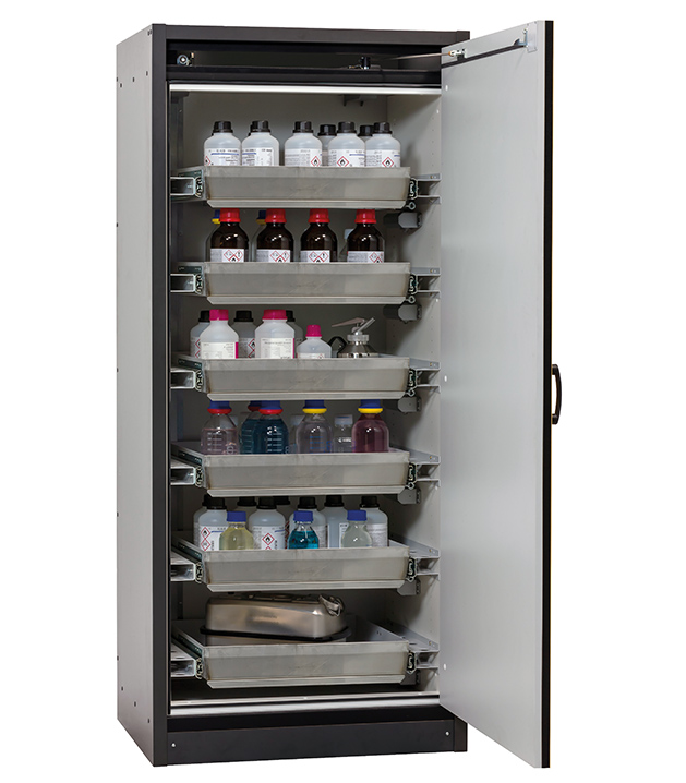 Bitte beachten Sie die jeweils gültigen, nationalen Regeln und Vorschriften zur Lagerung von Gefahrstoffen bei der Konfiguration Ihres Produktes. Sollten Sie unsicher sein, helfen Ihnen die asecos Experten gerne weiter.