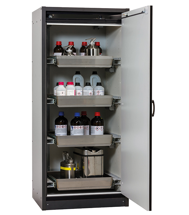 Bitte beachten Sie die jeweils gültigen, nationalen Regeln und Vorschriften zur Lagerung von Gefahrstoffen bei der Konfiguration Ihres Produktes. Sollten Sie unsicher sein, helfen Ihnen die asecos Experten gerne weiter.