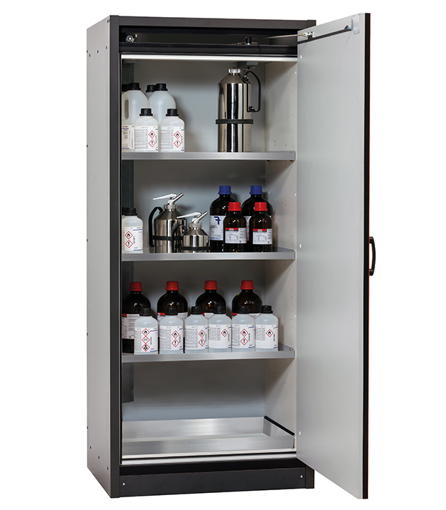 Bitte beachten Sie die jeweils gültigen, nationalen Regeln und Vorschriften zur Lagerung von Gefahrstoffen bei der Konfiguration Ihres Produktes. Sollten Sie unsicher sein, helfen Ihnen die asecos Experten gerne weiter.