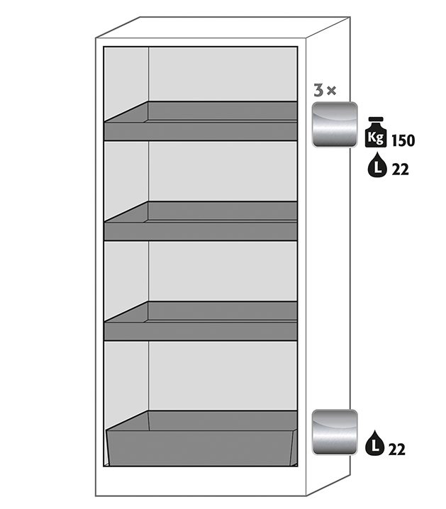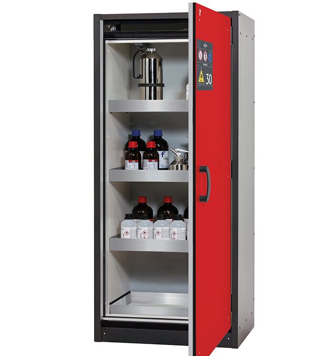 Bitte beachten Sie die jeweils gültigen, nationalen Regeln und Vorschriften zur Lagerung von Gefahrstoffen bei der Konfiguration Ihres Produktes. Sollten Sie unsicher sein, helfen Ihnen die asecos Experten gerne weiter.