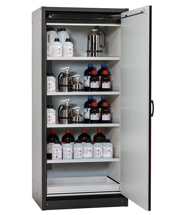 Bitte beachten Sie die jeweils gültigen, nationalen Regeln und Vorschriften zur Lagerung von Gefahrstoffen bei der Konfiguration Ihres Produktes. Sollten Sie unsicher sein, helfen Ihnen die asecos Experten gerne weiter.