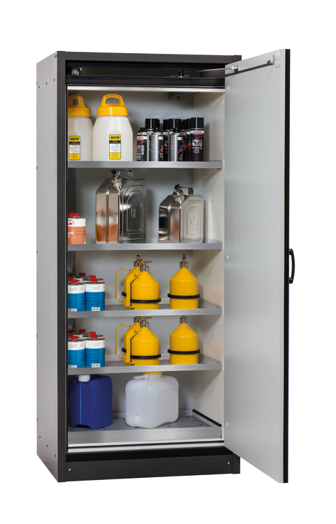 Bitte beachten Sie die jeweils gültigen, nationalen Regeln und Vorschriften zur Lagerung von Gefahrstoffen bei der Konfiguration Ihres Produktes. Sollten Sie unsicher sein, helfen Ihnen die asecos Experten gerne weiter.