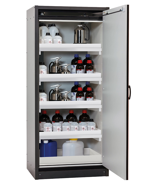 Bitte beachten Sie die jeweils gültigen, nationalen Regeln und Vorschriften zur Lagerung von Gefahrstoffen bei der Konfiguration Ihres Produktes. Sollten Sie unsicher sein, helfen Ihnen die asecos Experten gerne weiter.