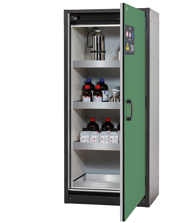 Bitte beachten Sie die jeweils gültigen, nationalen Regeln und Vorschriften zur Lagerung von Gefahrstoffen bei der Konfiguration Ihres Produktes. Sollten Sie unsicher sein, helfen Ihnen die asecos Experten gerne weiter.