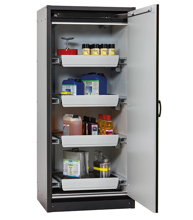 Bitte beachten Sie die jeweils gültigen, nationalen Regeln und Vorschriften zur Lagerung von Gefahrstoffen bei der Konfiguration Ihres Produktes. Sollten Sie unsicher sein, helfen Ihnen die asecos Experten gerne weiter.