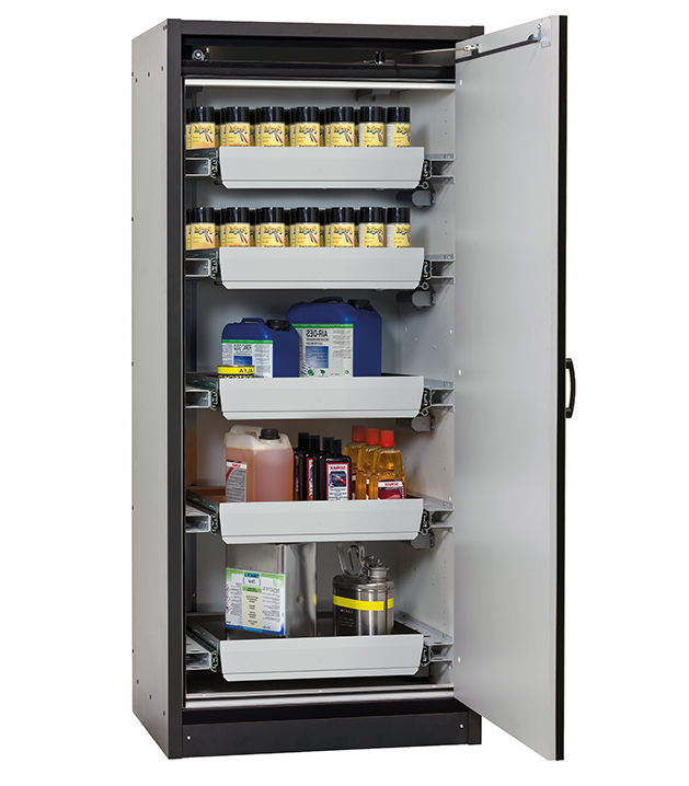 Bitte beachten Sie die jeweils gültigen, nationalen Regeln und Vorschriften zur Lagerung von Gefahrstoffen bei der Konfiguration Ihres Produktes. Sollten Sie unsicher sein, helfen Ihnen die asecos Experten gerne weiter.