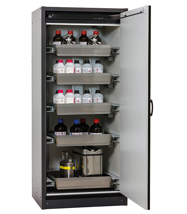 Bitte beachten Sie die jeweils gültigen, nationalen Regeln und Vorschriften zur Lagerung von Gefahrstoffen bei der Konfiguration Ihres Produktes. Sollten Sie unsicher sein, helfen Ihnen die asecos Experten gerne weiter.