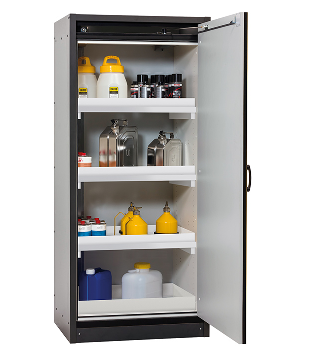 Bitte beachten Sie die jeweils gültigen, nationalen Regeln und Vorschriften zur Lagerung von Gefahrstoffen bei der Konfiguration Ihres Produktes. Sollten Sie unsicher sein, helfen Ihnen die asecos Experten gerne weiter.