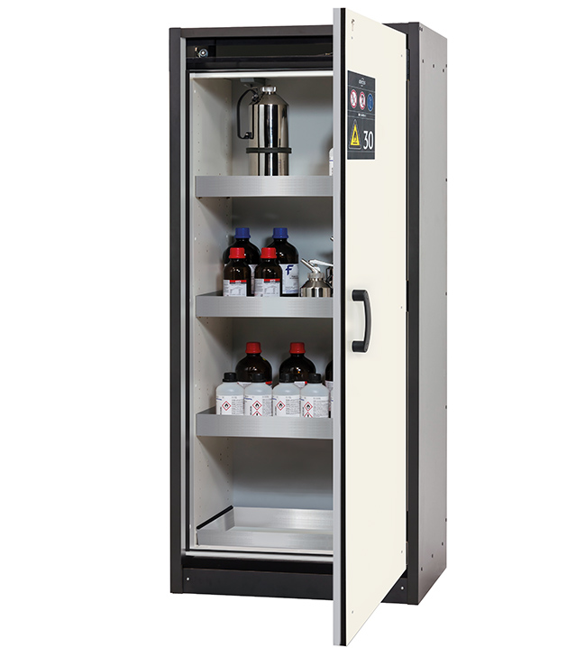 Bitte beachten Sie die jeweils gültigen, nationalen Regeln und Vorschriften zur Lagerung von Gefahrstoffen bei der Konfiguration Ihres Produktes. Sollten Sie unsicher sein, helfen Ihnen die asecos Experten gerne weiter.